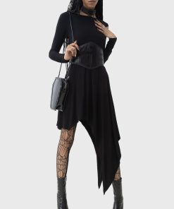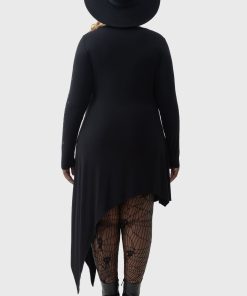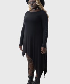 – Exaggerated asymmetric hem.