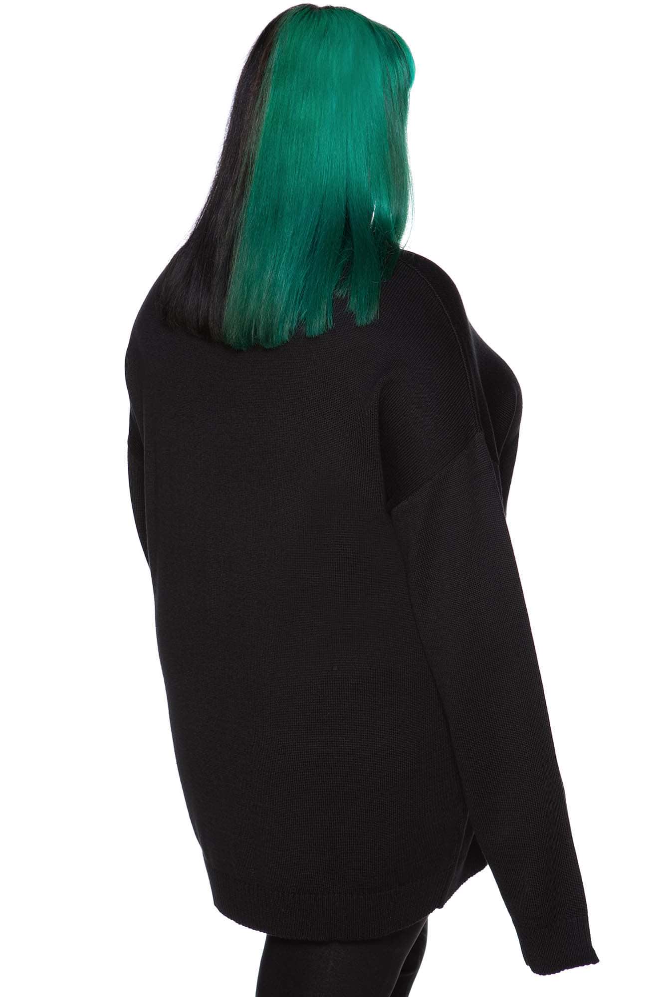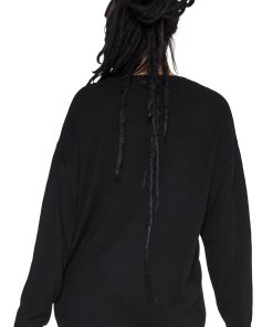 Cozy never looked so good – the ‘2 The Bone’ knit sweater ticks all the boxes. Extra long length to easily be dressed up or down, with a round neck, and contrast skull and bones statement graphic. Dress up or down as you dark heart desires; works both for warmer or colder looks!